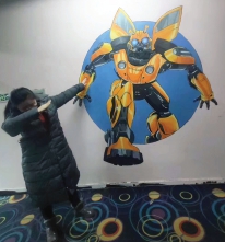 一幅画有唤醒一段美好时光的“魔法”。图①的“大黄蜂”是2019年春节假期时我在堂哥的店里画的,大概有4平方米,是我画过最大的墙体彩绘。那段时间充实又幸福,每天起床就去画画,一整天沉浸在自己的世界里。白天看着“大黄蜂”一点点地出现在墙上,很有成就感;到了晚上又可以家人相聚,感受祥和热烈的过年气息,正可谓是闲时有爱好相伴,万家灯火之际又有家人温暖,好不惬意。