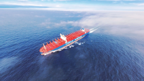 围绕绿色船型建造,打造低碳航运新标杆。近年来,随着碳达峰目标临近,航运业减排脱碳压力显著增大,新造并使用绿色低碳船舶成为最直接有效的举措。作为全球最大航运公司、综合运力世界第一的中远海运集团核心业务之一,中远海运重工加快绿色船型研发推广,不断丰富绿色船舶产品谱系。自主研发设计建造的超大型24188标准箱集装箱船,融合最新技术成果与智能化手段,船舶能效设计指数较基准值低50%以上,远超国际海事组织第三阶段要求,单箱油耗居同级别船型世界领先地位,综合性能和能源效率达到国际先进水平。建造交付的全球首制700标准箱纯电池动力集装箱船,成功突破江海直达船型安全等效设计、大容量电池监测及换电策略、直流配电及动力系统、电力控制接口标准制定、动力系统陆上联调试验等多项“从0到1”的关键技术,入选2023年度央企十大“国之重器”,为我国“双碳”战略落地、长江绿色生态保护及绿色航运示范作出重要贡献。