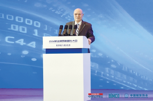 会议主题“智领航贸 数创未来”与BIMCO的理念高度契合。我们的会员企业正面临数字化转型,这将重塑全球贸易模式、未来船舶的建造与优化以及未来燃料的应用。相信大家都知道Codec这家公司,它在一夜之间消失,正是受数字化的影响。